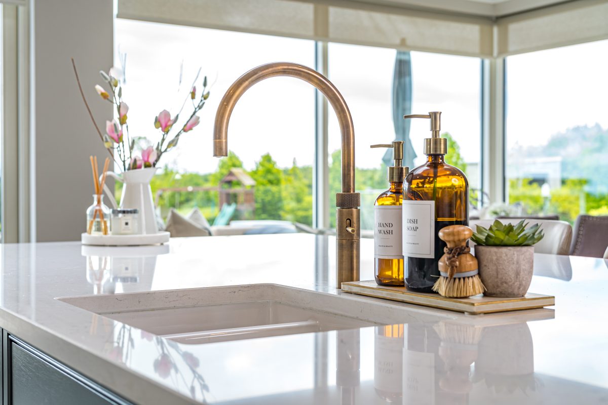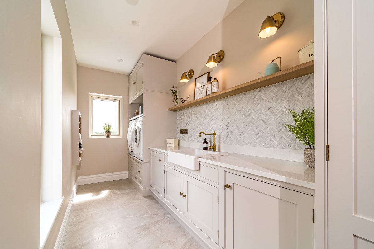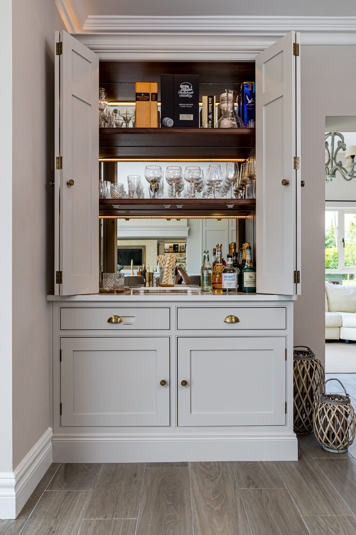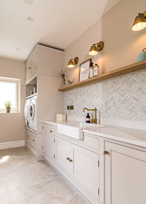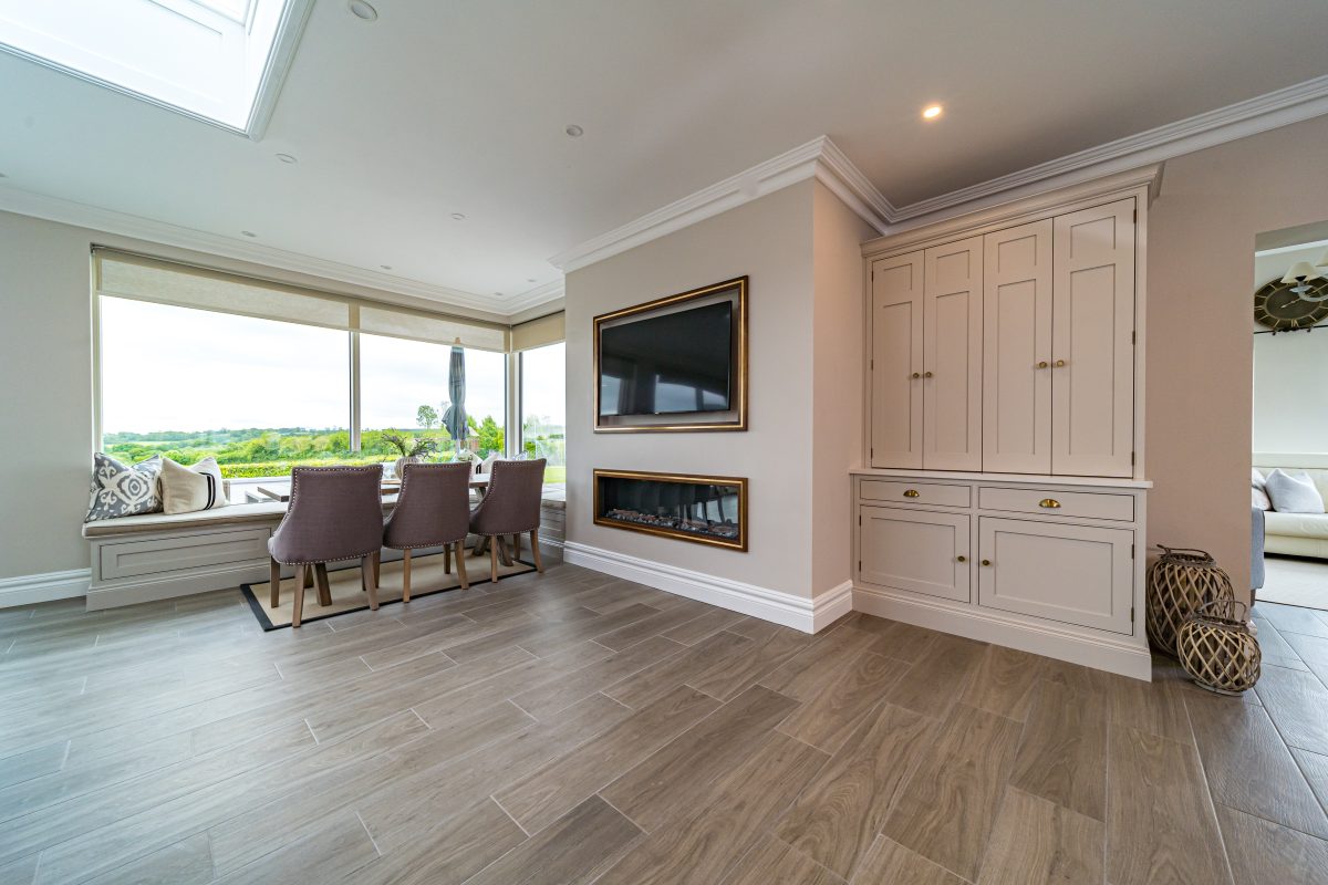 Using almost a full slab of quartz, the Daventry Kitchen island is a true centrepiece of the space. It houses an impressive range of features including integrated bins, dishwasher, sink, plate and cutlery storage, a charging drawer, and shallow storage on the seating side. With space for five barstools, the island delivers exceptional functionality without compromising on comfort or flow.