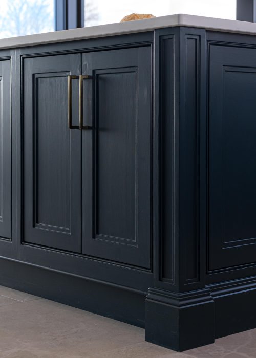 From the outside, the pantry is completely hidden within the tall run. A signature 44mm thick, cabinet-matched door gives the weight and stability of a piece of furniture rather than a standard internal door. Finished with a profiled skirting that continues through from the main kitchen, the elevation reads as one uninterrupted composition, preserving the symmetry of the space.