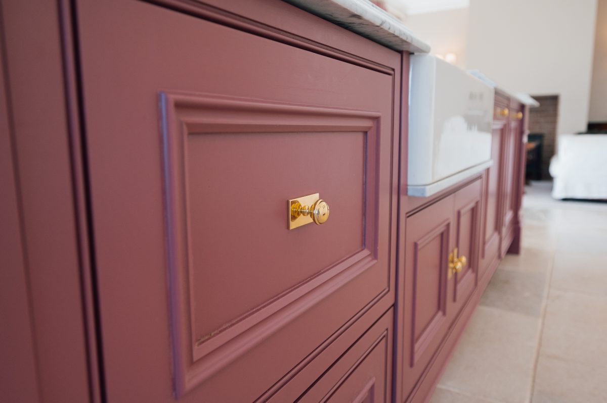 Polished cabinetry knobs from Armac Martin introduce a subtle layer of refinement to the Mahon Kitchen, offering a soft, understated finish that complements the painted cabinetry without drawing attention away from the overall design.