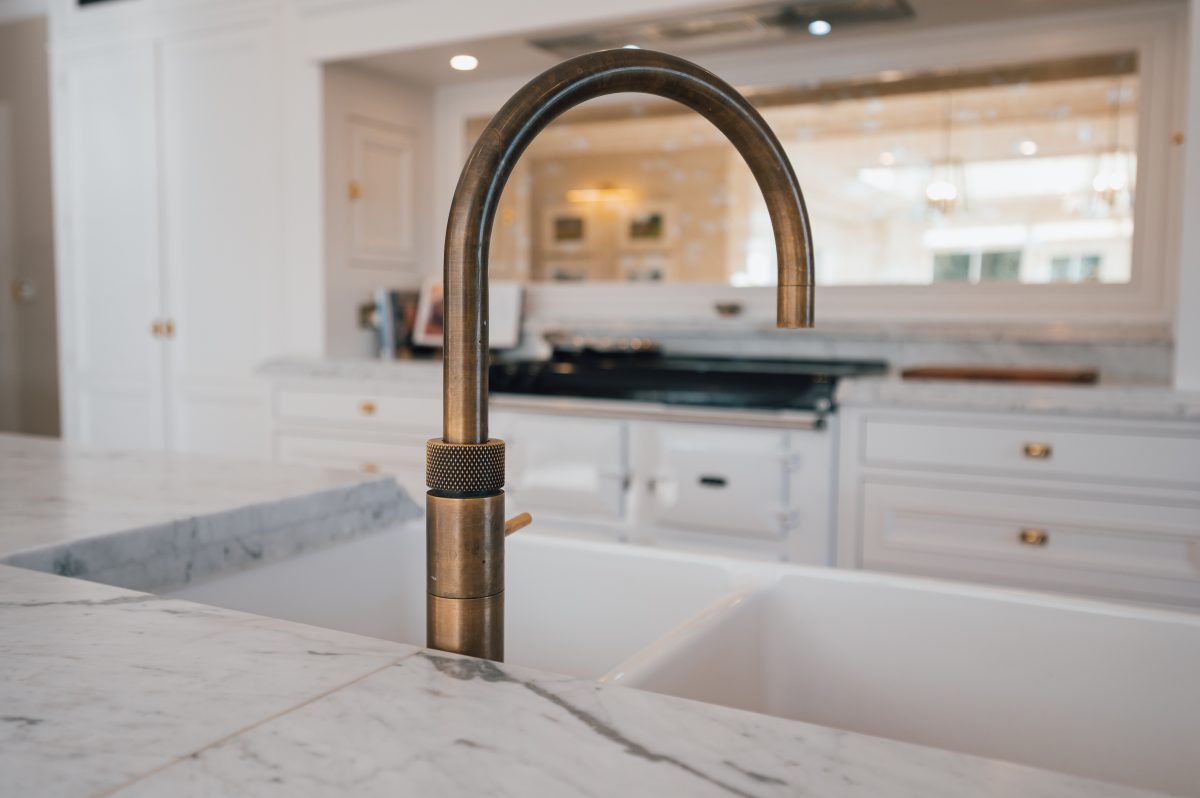 Paired with a Quooker Fusion tap, the detailing feels cohesive and carefully considered. The warm metallic tones add gentle highlights throughout the space, enhancing both functionality and visual balance.