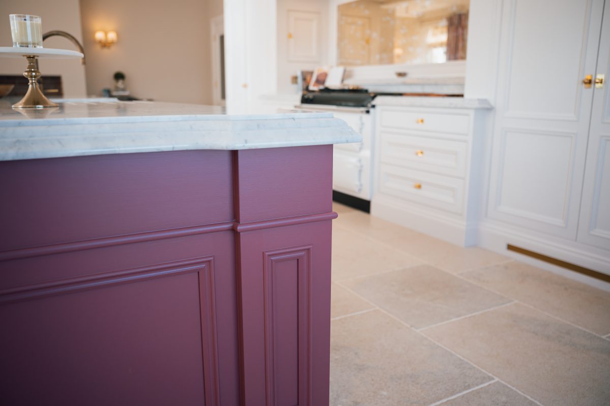 A beautifully balanced classic kitchen, The Mahon Kitchen Waterford combines timeless in-frame cabinetry with subtle, thoughtful detailing throughout. Finished in Colourtrend Powdered Shell and complemented by a contrasting island in a soft pink chocolate with an egg shell finish, the space achieves a refined yet inviting atmosphere.