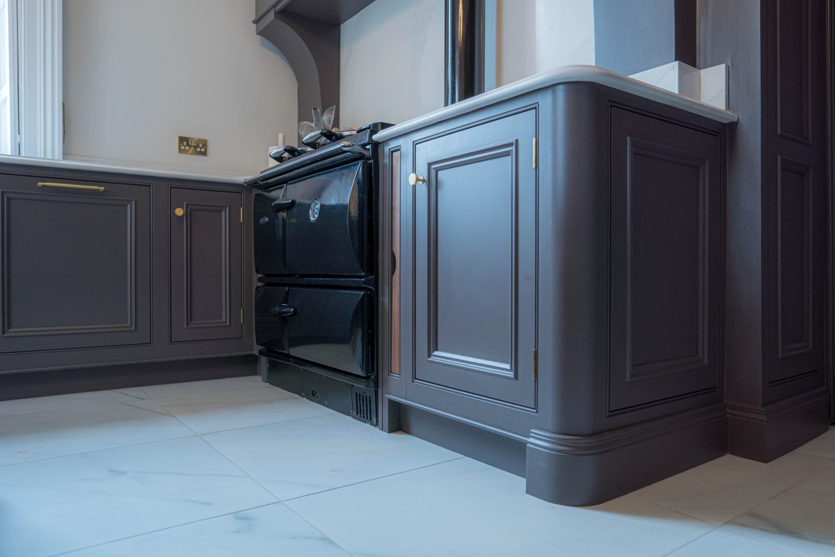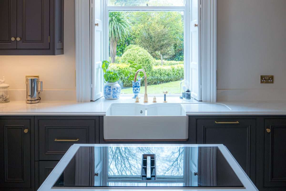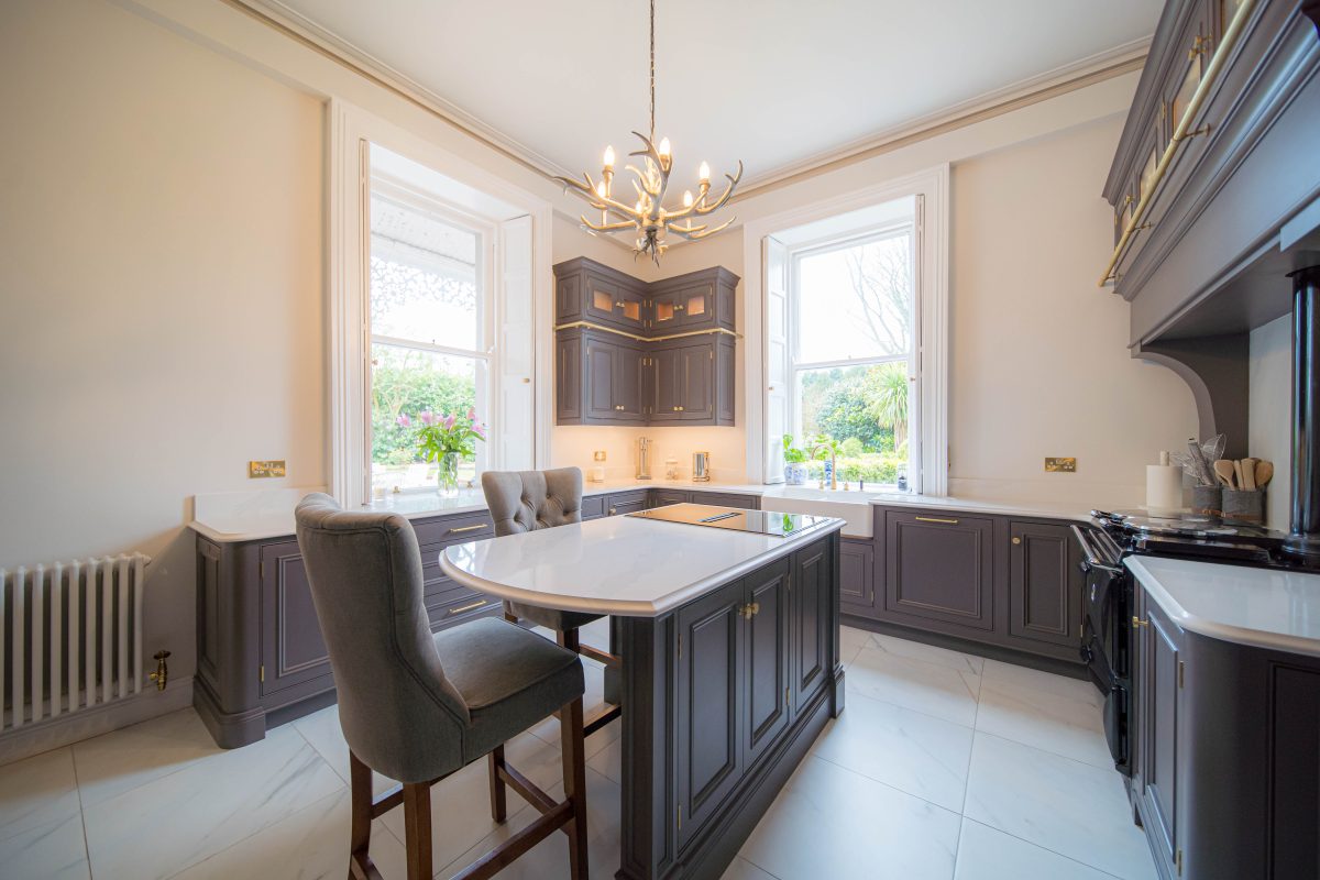 Part of the brief for the Tapeley Kitchen Waterford project was to evolve the existing kitchen design while maximising storage and preserving the character of this beautiful Georgian home. With this in mind, the original Waterford Stanley cooker was carefully integrated into the new layout, allowing the heart of the home to remain a central feature.