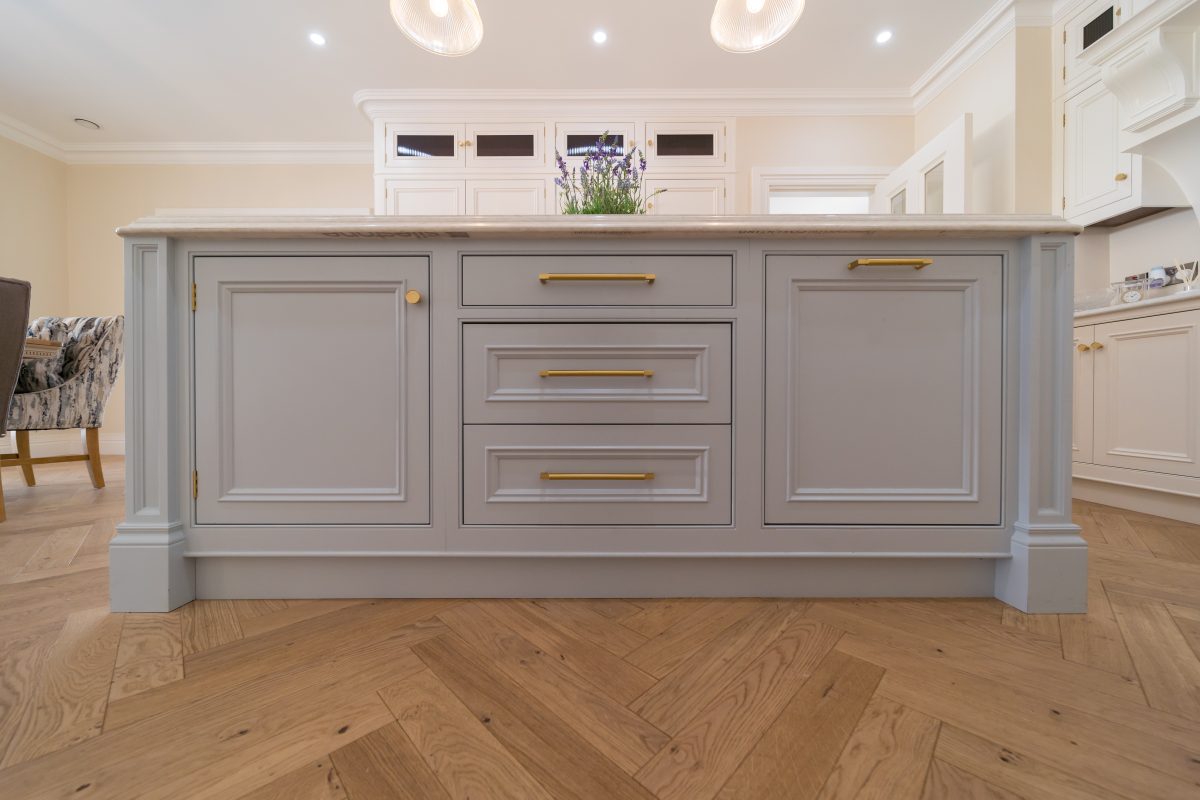 Finished in our signature hand-painted in-frame cabinetry, the island features a beautifully integrated three-drawer nest, providing generous and easily accessible storage for cutlery, utensils, and everyday essentials. This thoughtful layout ensures everything is close to hand while keeping the workspace uncluttered and organised.
